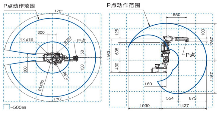 机器人动作范围截面面积2.58m2 ×340°
